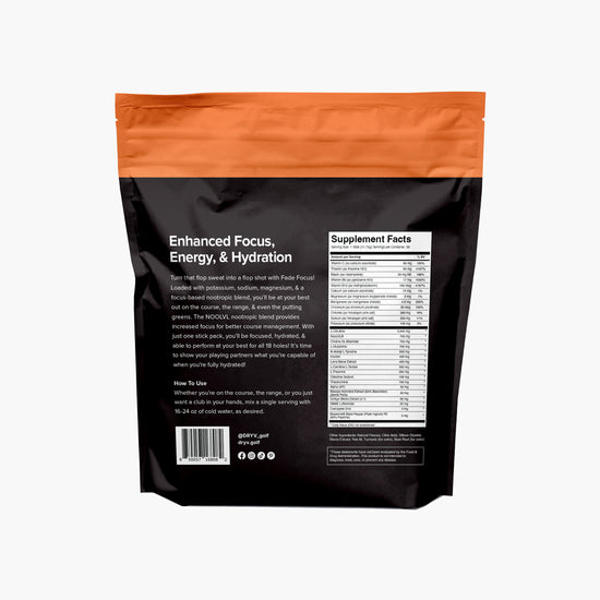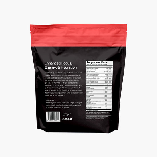 But that's not all—Focus goes above and beyond by incorporating a proprietary blend of key compounds renowned for their cognitive benefits. L-Citrulline supports blood flow, improving oxygen delivery to your muscles for increased endurance. NooLVL enhances focus, attention, and mental performance to keep you sharp throughout your round. Choline DL-Bitartrate and L-Glutamine promote brain health and neurotransmitter function, helping you stay in the zone.